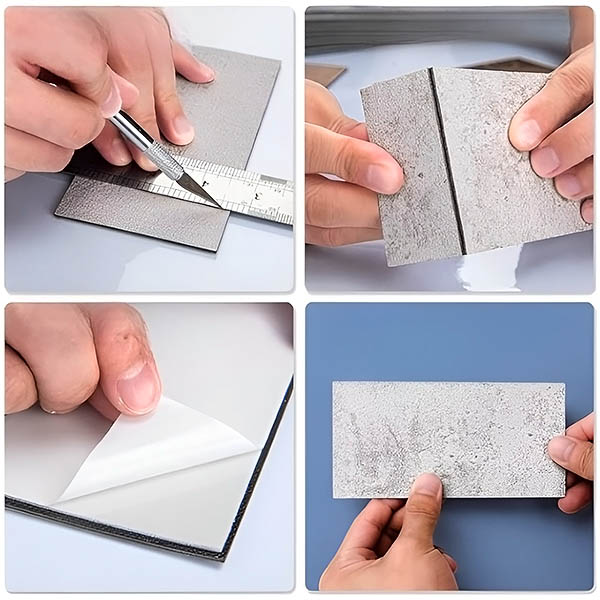 4. Pega en la pared: Presiona el azulejo con firmeza sobre una superficie limpia y lisa.