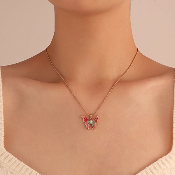 Eleva tu estilo con nuestro vibrante collar colgante de mariposa de colores, el epítome del estilo y la belleza. Esta exquisita pieza cuenta con un innovador proceso de goteo de aceite, dándole un impresionante estallido de color que es tan llamativo como elegante. 🌈🦋