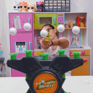 Es fácil de montar: ¡coloque las cinco pelotas en los pilares, encienda el juego y las pelotas quedarán suspendidas en el aire! Luego, compita para derribar las bolas tan rápido como pueda con las pistolas de dardos de espuma incluidas.