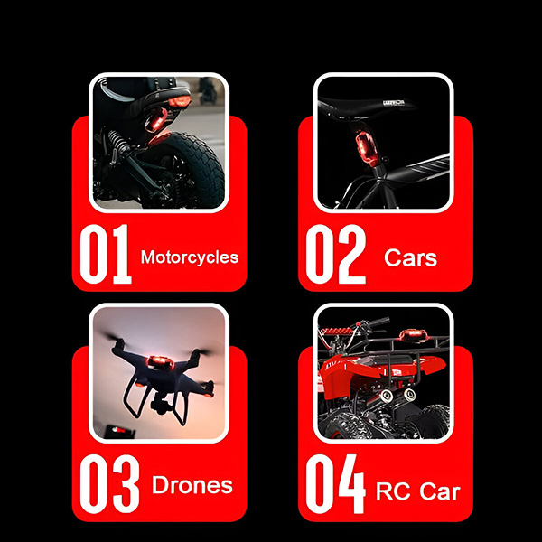 La mayoría de las luces requieren soportes, tornillos o modificaciones permanentes que no sirven para diferentes vehículos. STROBIES se acopla en segundos usando almohadillas de velcro o anillos de goma – sin herramientas, sin taladrar, sin dañar tu vehículo. Cámbialo entre tu coche, moto, bicicleta, dron, casco o mochila cuando lo necesites.