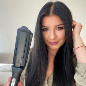 El recubrimiento cerámico deja su cabello superliso, brillante y suave al tacto.