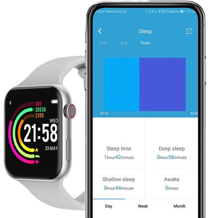 Este reloj inteligente unisex Apple-Copy se encarga de su actividad física, reproduce música y también se puede utilizar para llamadas y mensajes.