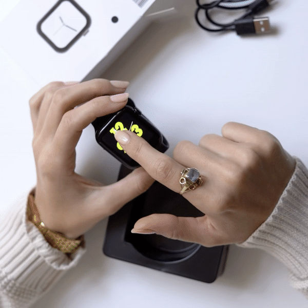 Recargue el reloj inteligente inclinando el cable con las clavijas magnéticas en su parte trasera. Es rápido y sencillo. ¡ULTID-32 es innovador y práctico!