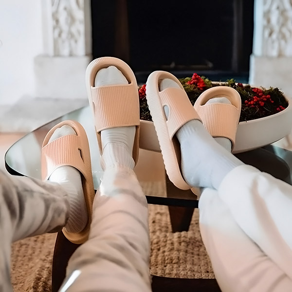 Mantén tus pies frescos y secos en cualquier estación. El material de FLIPSY es transpirable y de secado rápido, asegurando comodidad duradera, ya sea descansando en casa o pasando de espacios húmedos a secos.